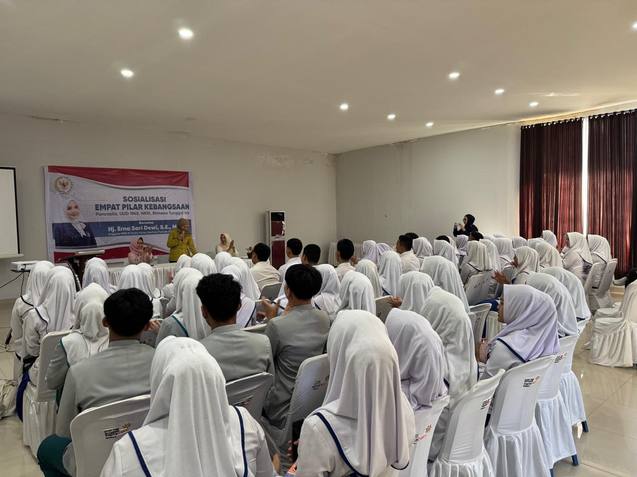 Bengkulu, – Anggota Komisi VII DPR RI Fraksi Partai NasDem Daerah Pemilihan Provinsi Bengkulu, Hj. Erna Sari Dewi, SE, mengingatkan masyarakat akan pentingnya memahami dan mengamalkan Empat Pilar Kebangsaan sebagai fondasi utama dalam menjaga persatuan dan kesatuan bangsa. Hal tersebut disampaikannya saat kegiatan Sosialisasi Empat Pilar Kebangsaan yang digelar di Aula STIKES Sapta Bhakti, Kota Bengkulu.