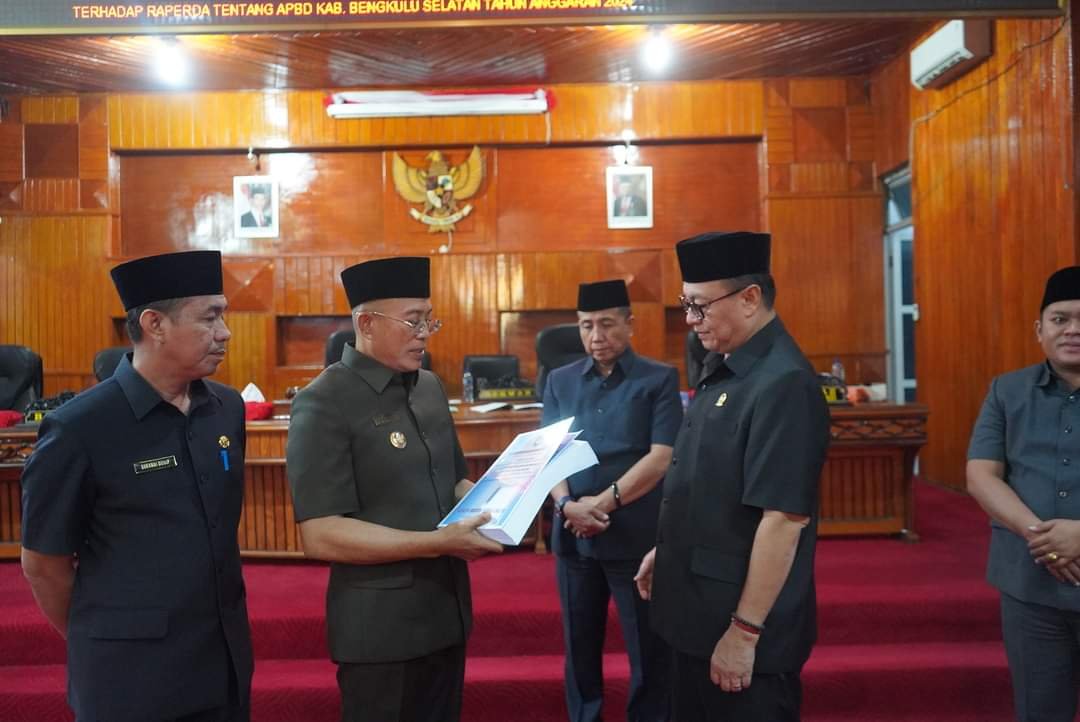 Bengkulu Selatan, – Pada paripurna yang digelar oleh DPRD Bengkulu Selatan hari ini, Bupati Bengkulu Selatan Gusnan Muyadi menyampaikan nota penjelasannya terhadap Rancangan Peraturan Daerah Tentang APBD Kabupaten Bengkulu Selatan Tahun Anggaran 2024.