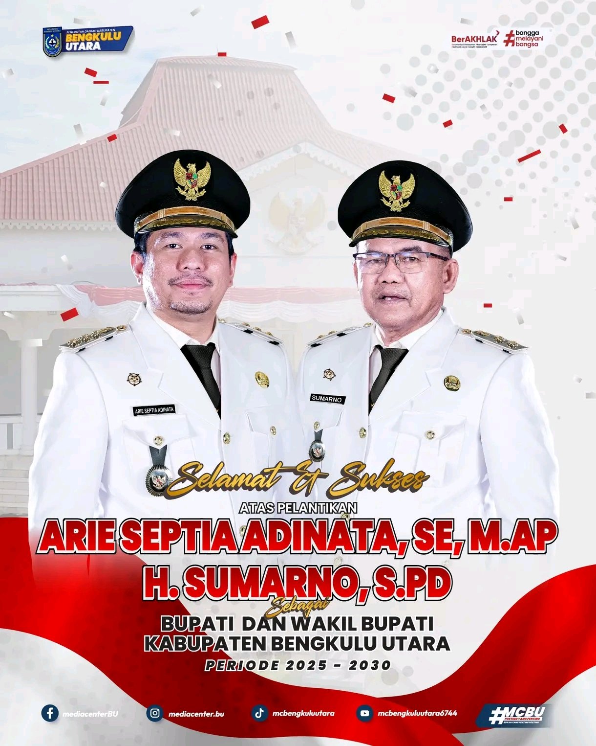 Bupati Bengkulu Utara, Arie Septia Adinata, dalam pernyataannya menegaskan komitmennya untuk melanjutkan program-program strategis yang berfokus pada peningkatan kesejahteraan masyarakat. Sementara itu, Wakil Bupati H. Sumarno menyatakan kesiapan dalam memperkuat sinergi antara pemerintah daerah dan masyarakat guna menciptakan pembangunan yang merata dan inklusif.