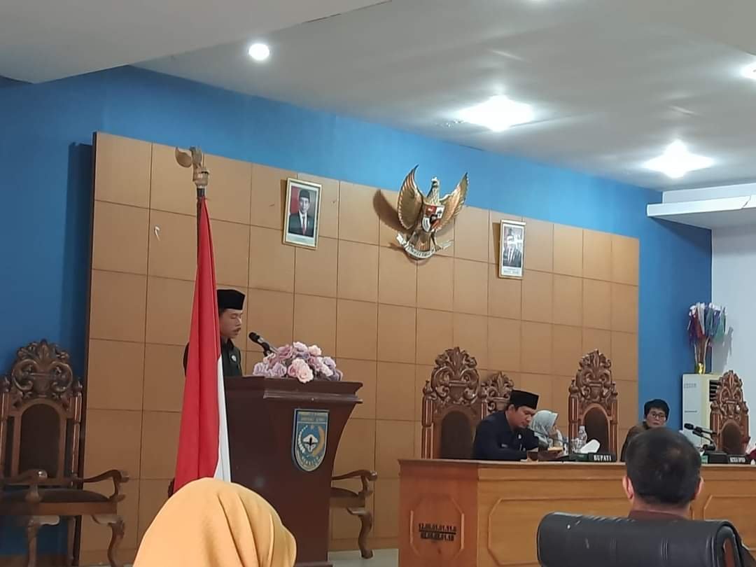 Bengkulu Utara, – Wakil Bupati (Wabup) Bengkulu Utara (BU) Arie S Adinata, SE, M.Ap menghadiri rapat paripurna Dewan Perwakilan Rakyat Daerah (DPRD) Kabupaten Bengkulu Utara dalam agenda penyampaian pandangan umum Fraksi-Fraksi terhadap Rancangan Peraturan Daerah (Raperda) Anggaran Pendapatan Belanja Daerah (APBD) Kabupaten BU Tahun Anggaran 2024, bertempat di Ruang Rapat Paripurna DPRD BU, Selasa (24/10/2023).