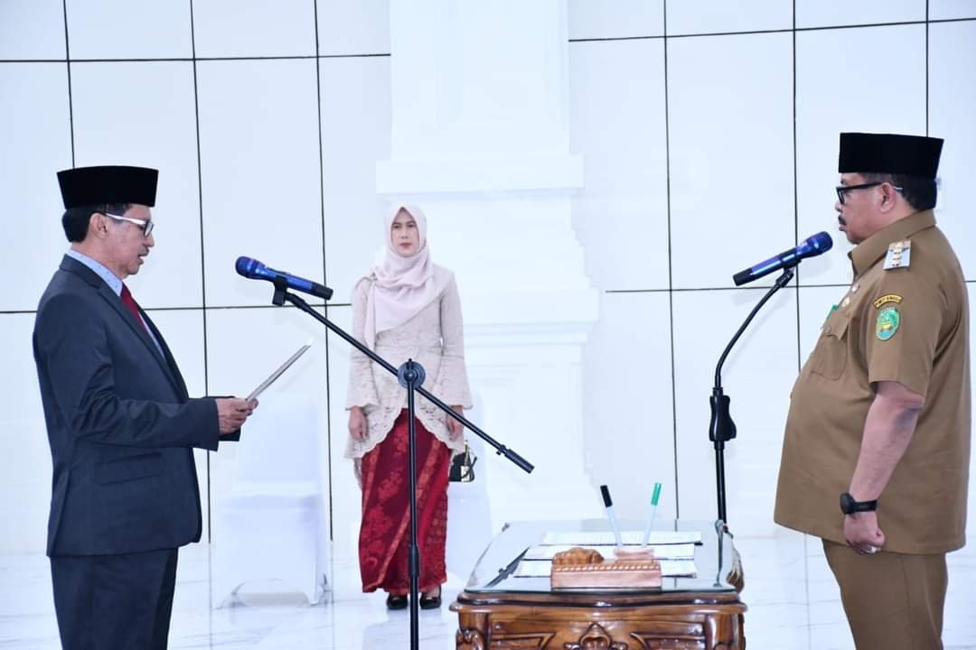 Bengkulu, – Penjabat (Pj) Walikota Bengkulu Arif Gunadi melantik dan mengambil sumpah janji Penjabat (Pj) Sekretaris Daerah (Sekda) Eka Rika Rino di Balai Kota Merah Putih, Senin (20/11).