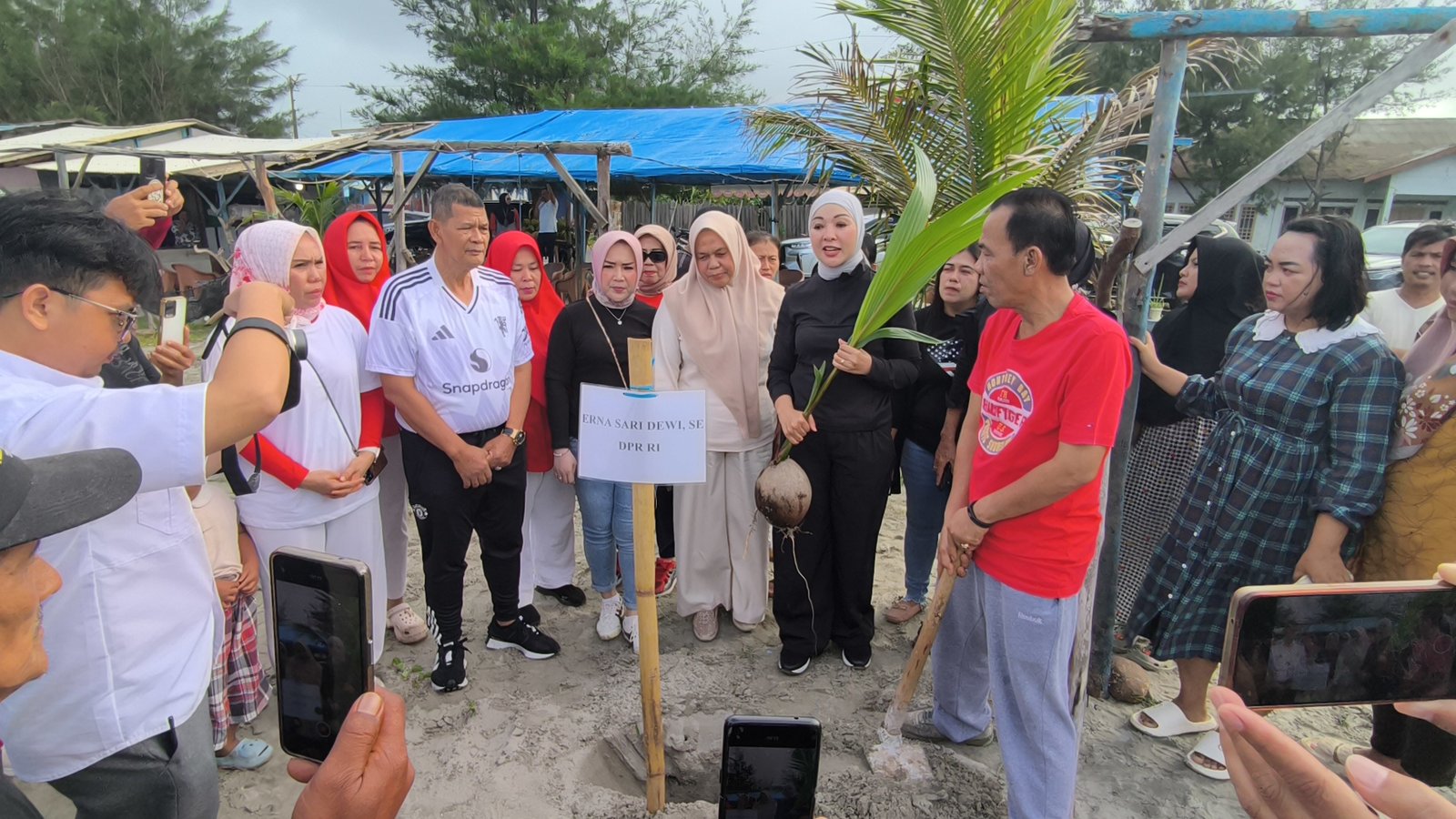 “Ini adalah rangkaian kegiatan kunjungan daerah pemilihan saya. Hari ini kami bersama-sama masyarakat melakukan penanaman pohon kelapa sebagai wujud kepedulian terhadap lingkungan, terutama di kawasan Pantai Panjang ini. Saya ingin mengajak seluruh masyarakat untuk ikut menjaga dan merawat kebersihan serta kelestarian lingkungan sekitar,” ujar Erna.