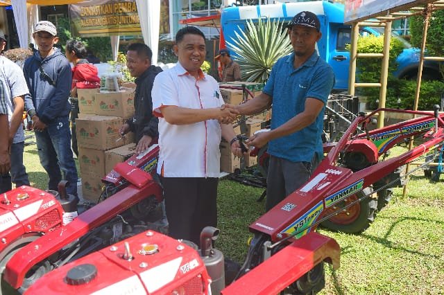 Adapun ke 48 unit Alsintan ini sendiri, sambungnya, terdiri dari 3 unit Handtraktor – 10 unit Cultivator – 20 unit mesin rumput dan 15 Hand Sprayer.
