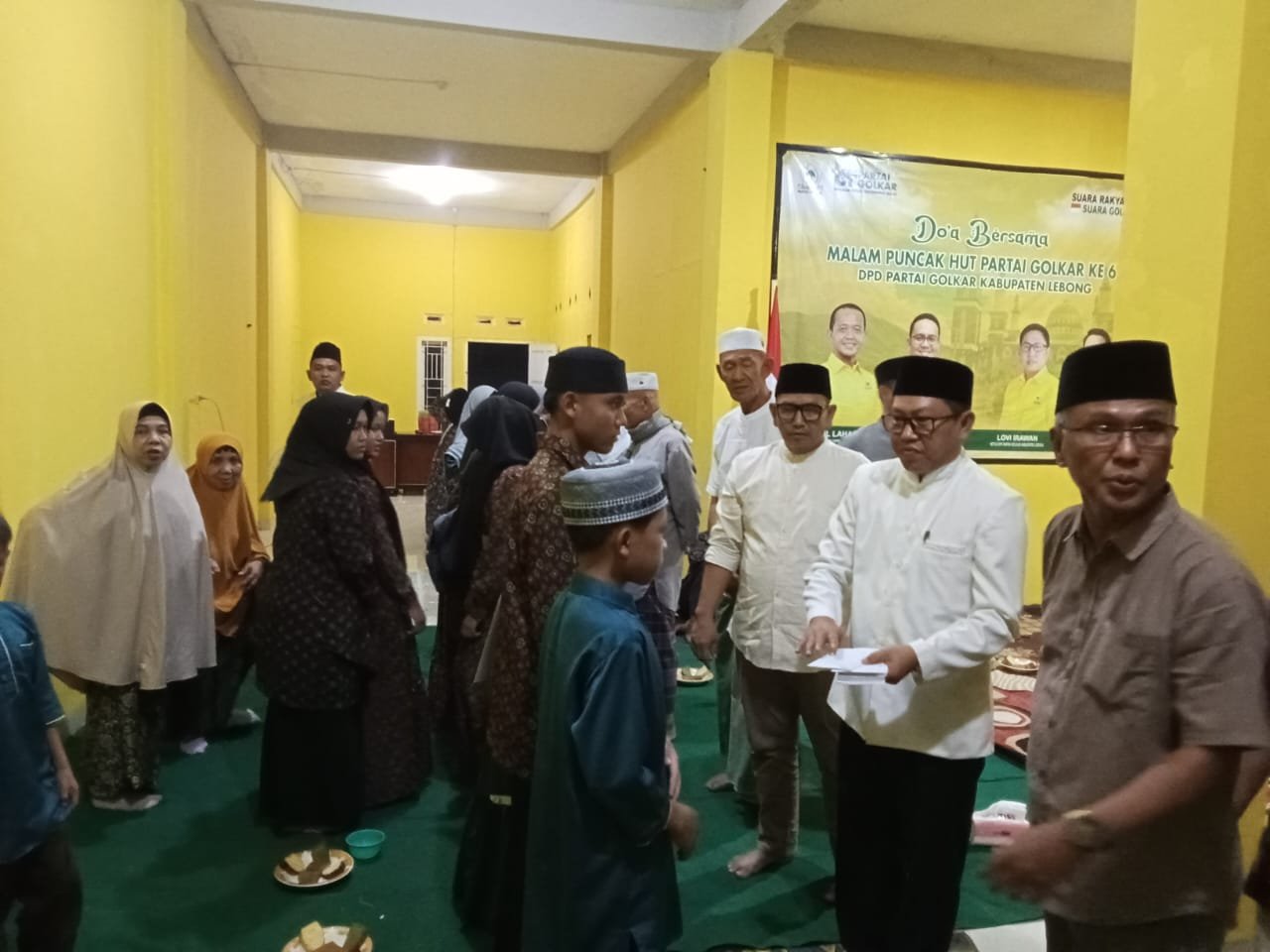 Lebong, – Dalam suasana penuh kehangatan dan kekhidmatan, DPD Partai Golkar Kabupaten Lebong menggelar Doa Bersama dan pemberian santunan anak yatim piatu pada malam puncak peringatan Hari Ulang Tahun (HUT) ke-61 Partai Golkar. Kegiatan digelar di Sekretariat DPD Partai Golkar Lebong, Jumat (05/12/2025), sekaligus menjadi penutup rangkaian acara yang telah berlangsung sebelumnya.
