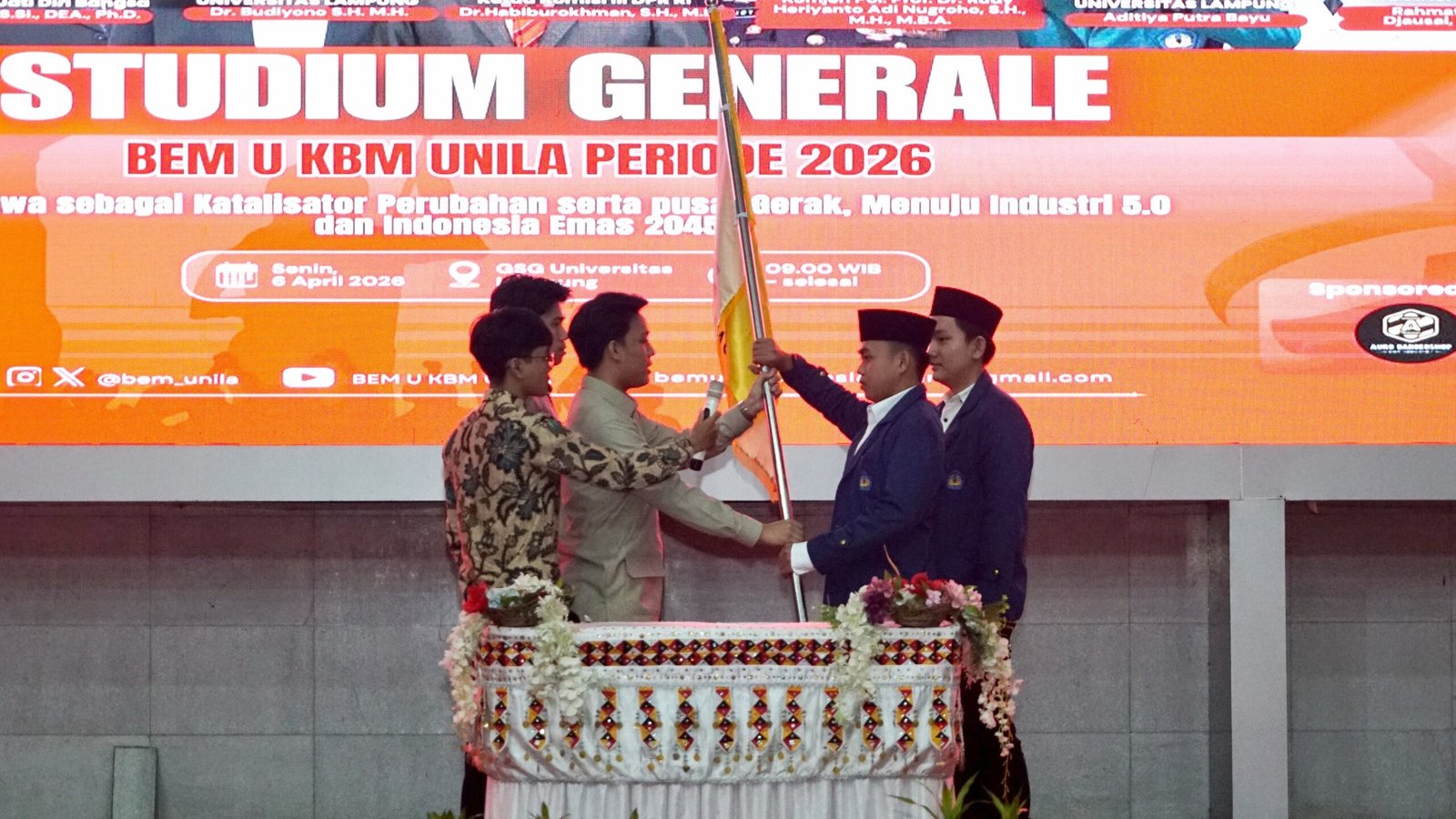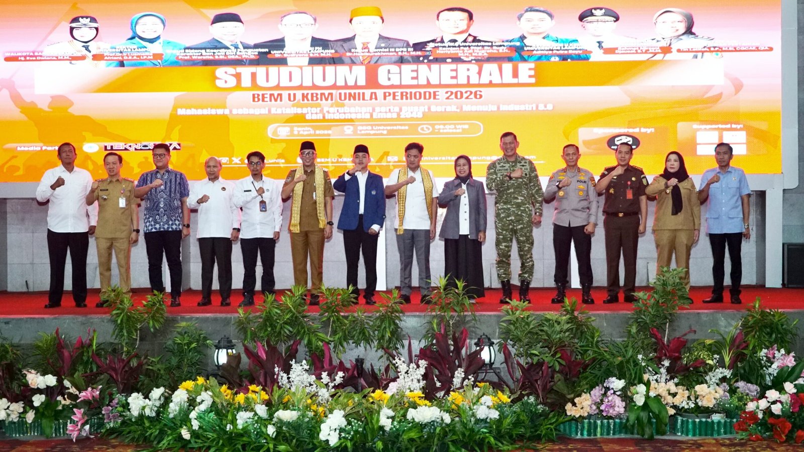 Lampung, – Pangdam XXI/Radin Inten, Kristomei Sianturi, menghadiri kegiatan Stadium General dan Pelantikan BEM U KBM Universitas Lampung periode 2026. Acara tersebut digelar di Gedung Serba Guna (GSG) Unila, Kota Bandar Lampung, Senin (6/4/2026), dengan mengusung tema “Mahasiswa sebagai katalisator perubahan serta pusat gerak menuju Industri 5.0 dan Indonesia Emas 2045”.