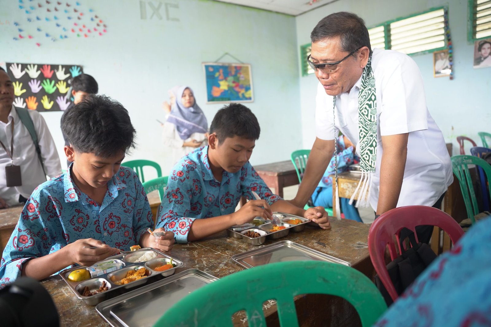 Setelah peninjauan dapur, ia kemudian memantau pelaksanaan MBG di SD Negeri 73 Kota Bengkulu. Para murid yang berjumlah 111 orang menyambut kotak makan dengan suka cita. Menu yang disajikan berupa nasi, chicken katsu, tempe orek, capcay, buah jeruk dan susu.