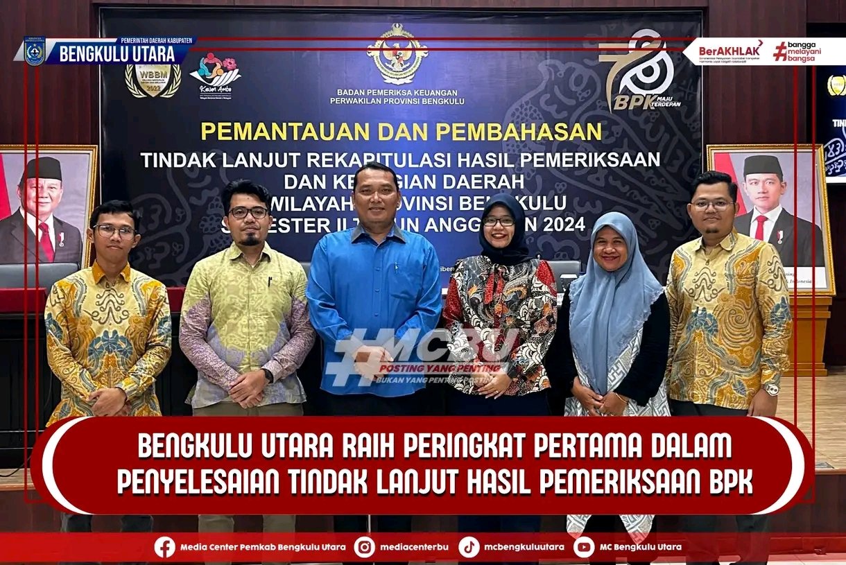 Bengkulu Utara, – Kabupaten Bengkulu Utara menorehkan prestasi gemilang dengan meraih peringkat pertama dalam penyelesaian Tindak Lanjut Hasil Pemeriksaan Badan Pemeriksa Keuangan (BPK) Semester II Tahun 2024. Dengan tingkat penyelesaian mencapai 89,67%, Kabupaten Bengkulu Utara berhasil menindaklanjuti 1.009 rekomendasi dari total 1.125 rekomendasi, menjadikannya yang tertinggi di Provinsi Bengkulu.