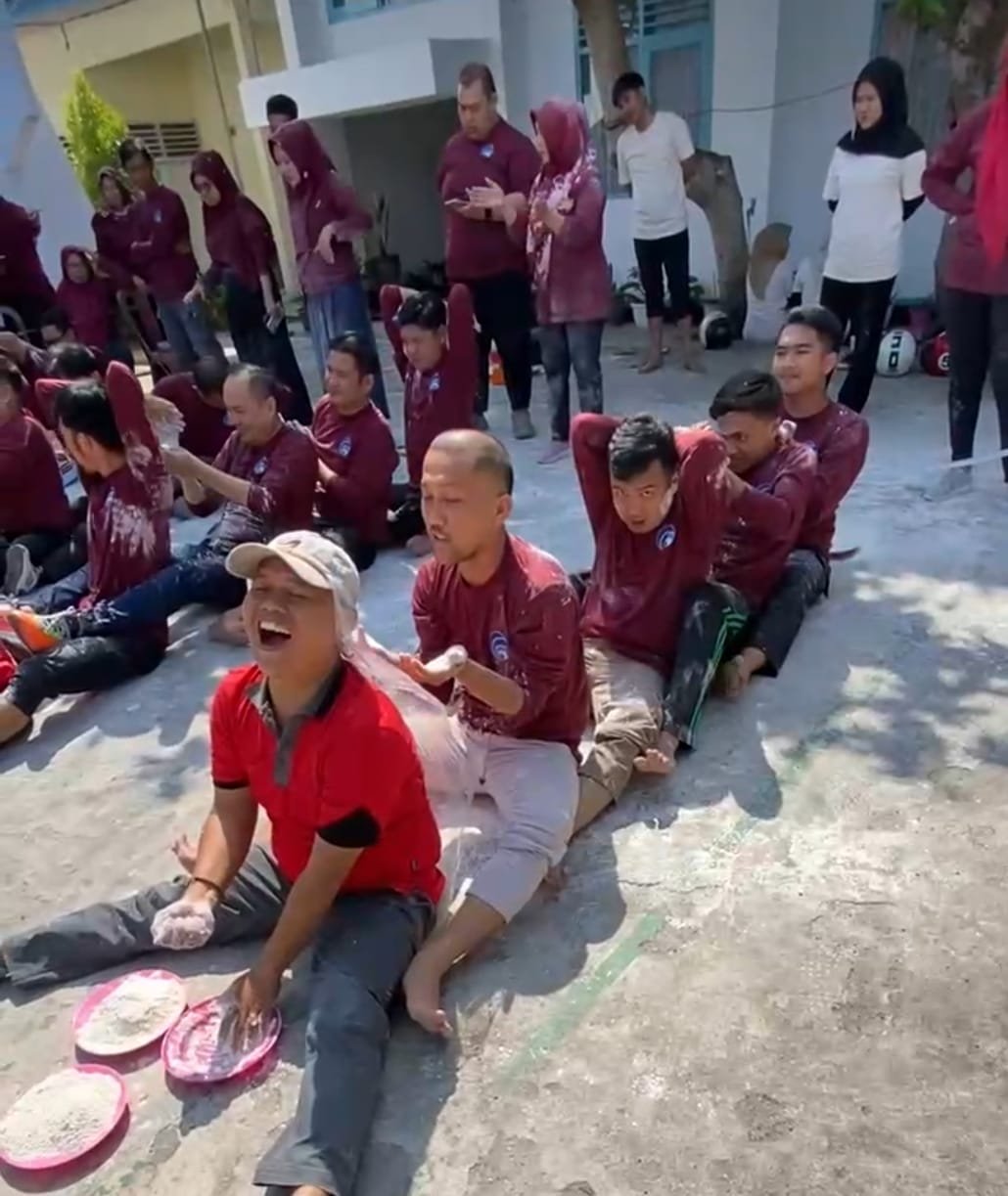 Salah satu perlombaan yang paling mencuri perhatian adalah estafet tepung, sebuah permainan beregu yang menantang dan penuh keceriaan. Dalam perlombaan ini, setiap tim harus memindahkan tepung dari satu piring ke piring lainnya, namun dengan tangan terbalik dan tanpa melihat. Tepung diteruskan dengan cara meletakkannya di atas kepala rekan tim di belakangnya, yang menambah keseruan dan tantangan.