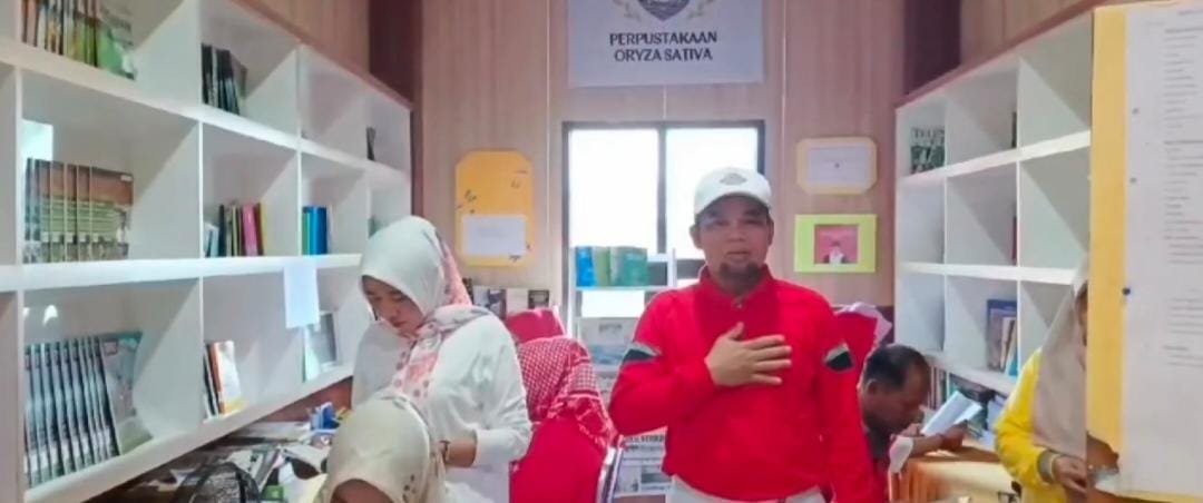 “Mengucapkan selamat datang di pojok baca Oryza Sativa sesuai arahan Gubernur Bengkulu Rohidin Mersyah minimal 15 menit setelah apel. Ayo kita rajin baca buķu agar hidup berdikari” Kata M. Rizon