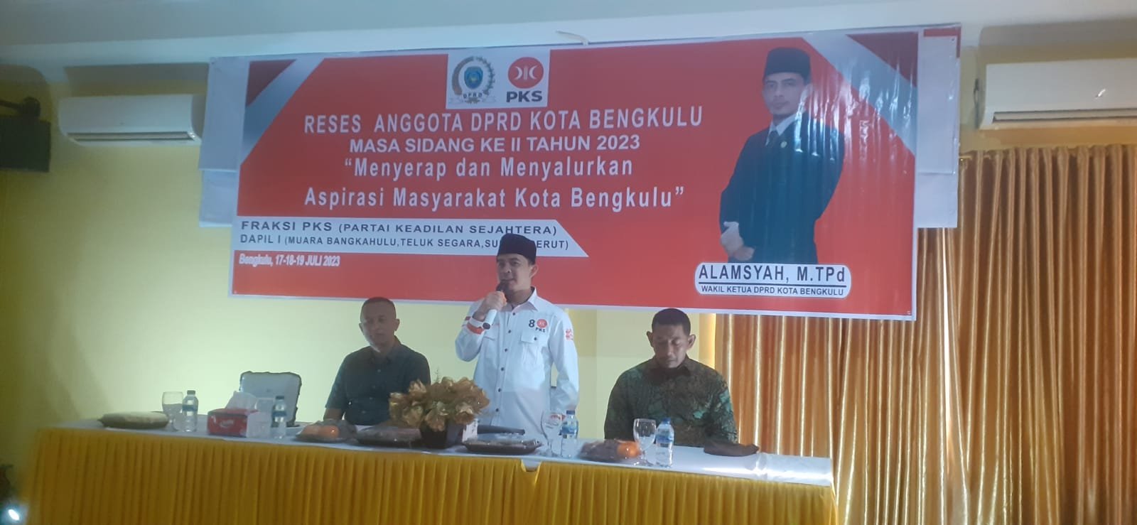 Bengkulu, – Wakil Ketua II DPRD Kota Alamsyah Rabu Sore menggelar Reses di Kantor DPW PKS. Reses yang dihadiri puluhan warga tersebut berasal dari tiga kecamatan diantaranya Teluk Segara, Sungai Serut dan Muara Bangkahulu.