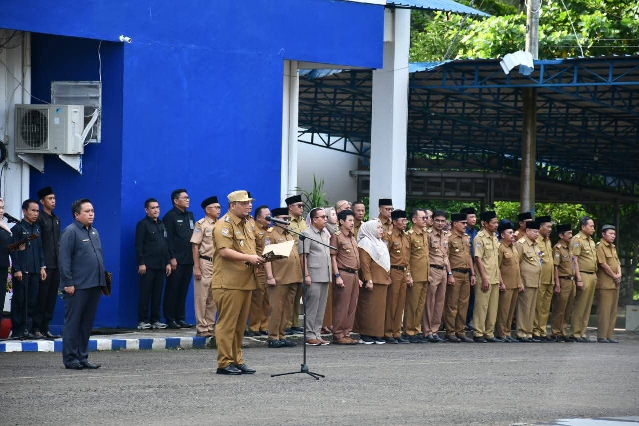 Bengkulu, – Wakil Walikota Bengkulu Ronny PL Tobing memimpin apel pagi gabungan untuk pertama kalinya di kantor walikota Kelurahan Bentiring, Senin (24/2/25). Apel pagi diikuti seluruh ASN dan PTT dari seluruh OPD di lingkungan Pemkot Bengkulu.