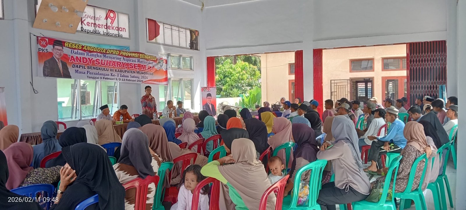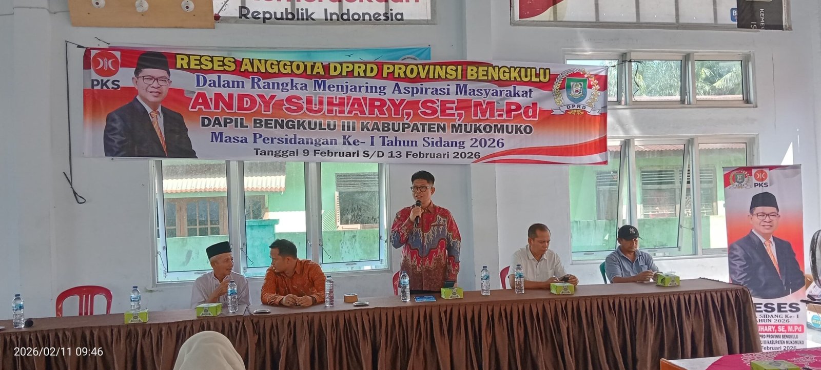 Mukomuko, – Anggota DPRD Provinsi Bengkulu, H. Andy Suhary, S.E., M.Pd, melaksanakan kegiatan reses di Desa Pasar Sebelah, Kabupaten Mukomuko, pada Rabu (11/2/2026).