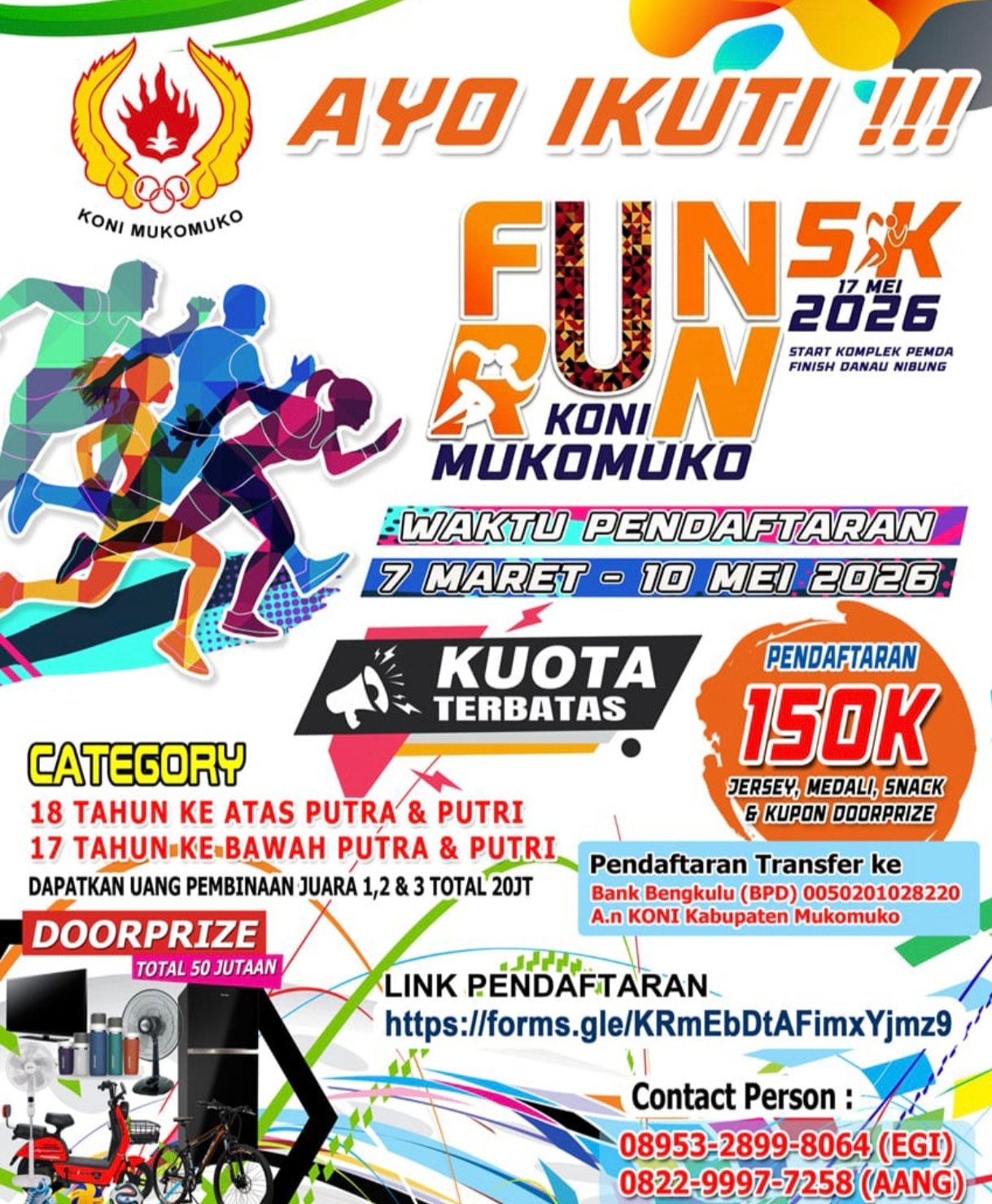 Novri menuturkan, pelaksanaan Fun Run KONI Mukomuko ini memang masuk cukup lama, yaitu pada 17 Mei 2026 mendatang.