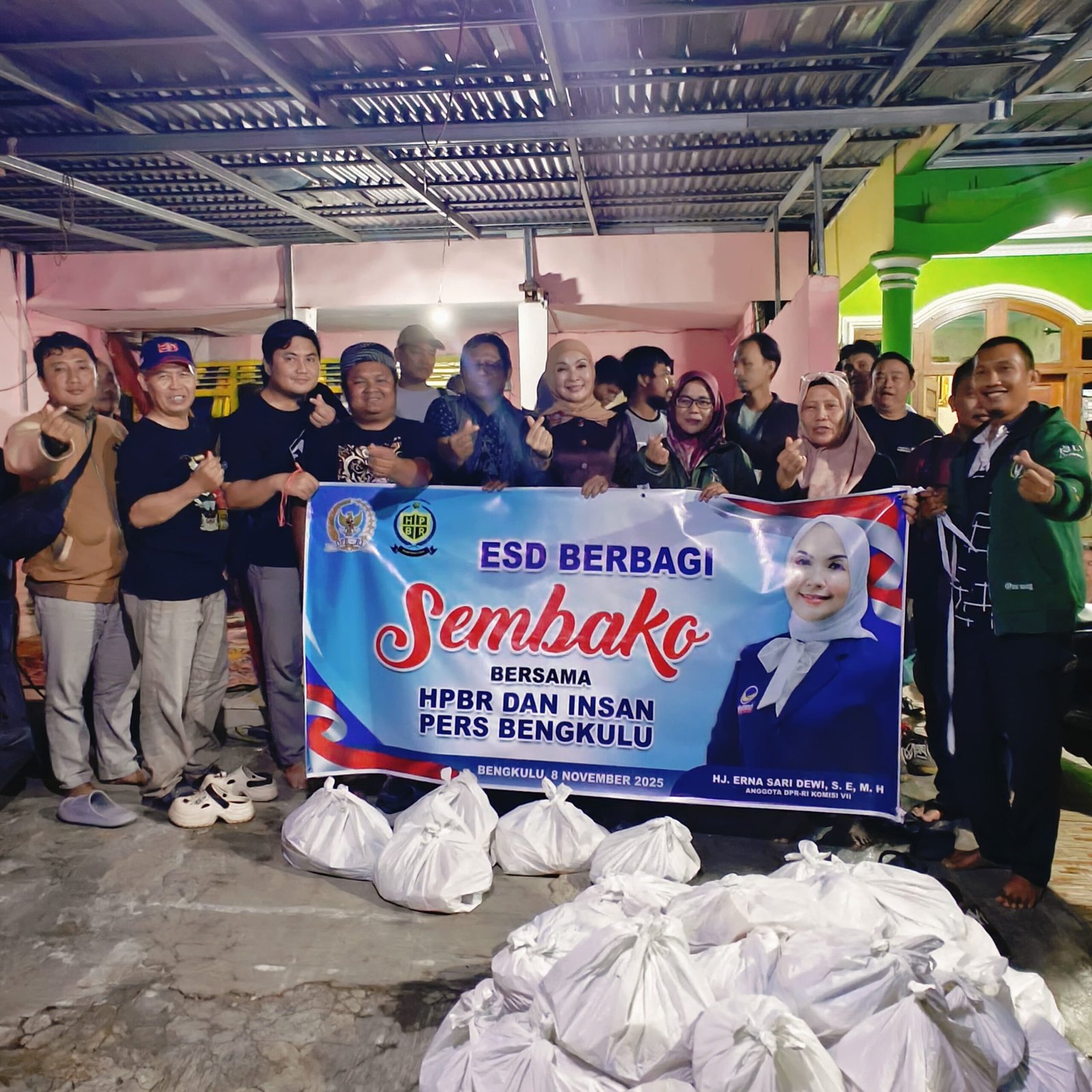 Bengkulu, – Guna mendukung kinerja wartawan selama dilapangan, Legislator DPR RI Erna Sari Dewi membagikan sejumlah paket sembako kepada wartawan Bengkulu bersama organisasi HPBR pada Sabtu (8/11) sore di salah satu kediaman anggota Persatuan Wartawan Indonesia Provinsi Bengkulu.