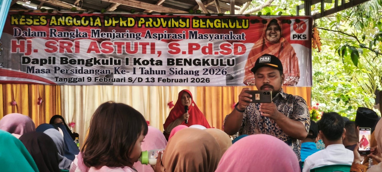 Bengkulu, – Anggota Komisi IV DPRD Provinsi Bengkulu, Hj. Sri Astuti S.Pd, SD, menegaskan pentingnya pendidikan sebagai fondasi utama kemajuan bangsa saat kegiatan reses yang digelar Kamis (12/2/2026). Dalam kesempatan tersebut, ia juga menghadirkan narasumber dari Dinas Tenaga Kerja (Disnaker) serta BPJS Kesehatan untuk menjawab berbagai persoalan masyarakat.