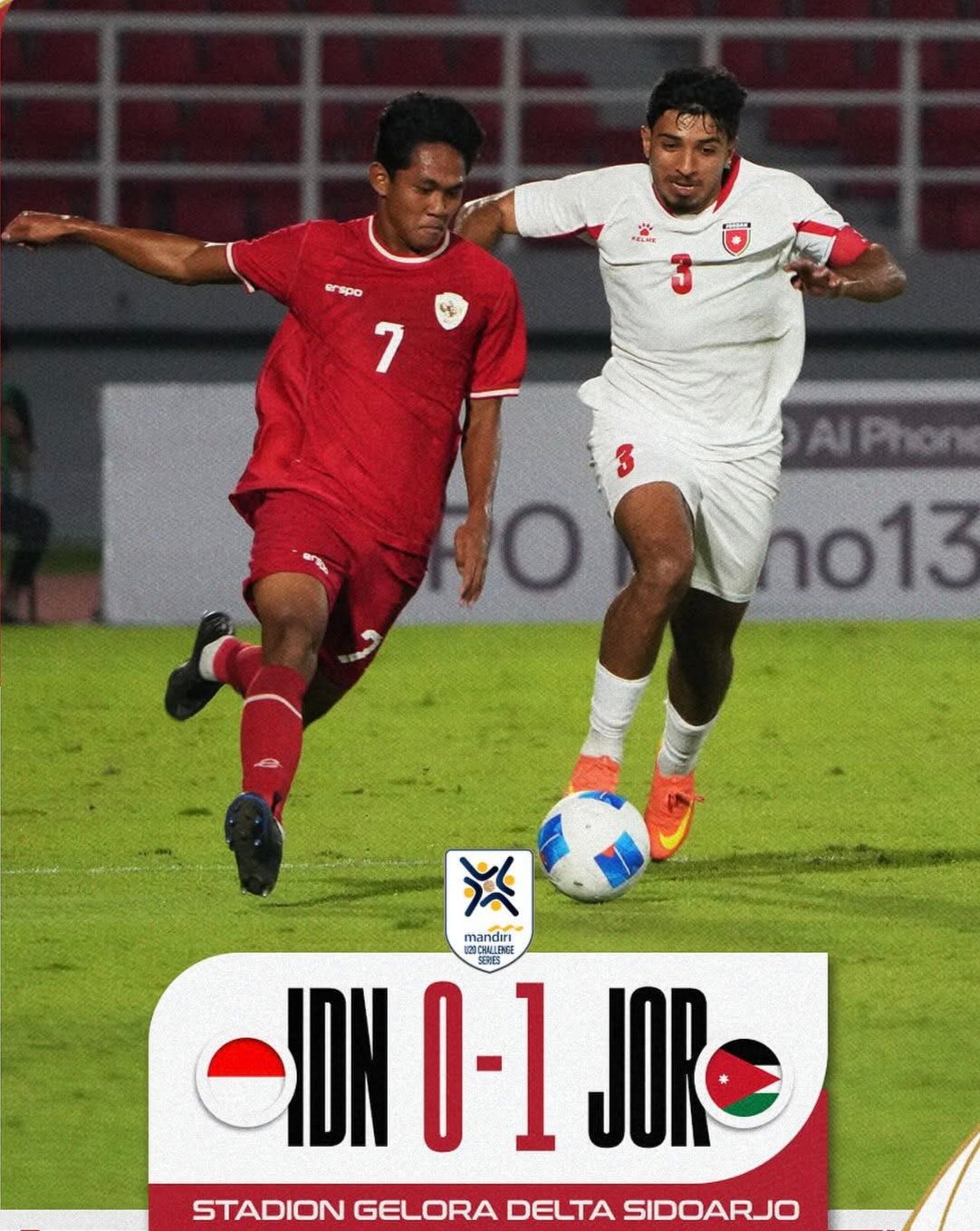 Pelatih Indra Sjafri terlihat terus memberikan instruksi dari pinggir lapangan, tetapi performa para pemain Garuda belum cukup untuk menyamakan level permainan dengan Jordania.